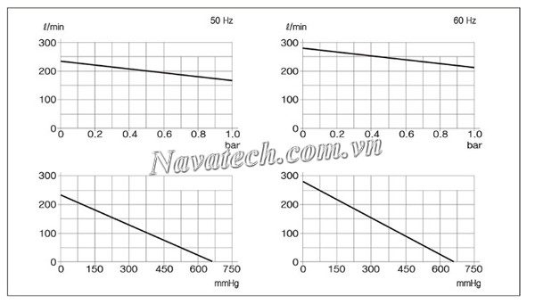 Doovac SML 280 duy trì lưu lượng ổn định đến gần 235 L/phút khi hoạt động dưới mức áp suất thấp. Đường cong hiệu suất cho thấy máy hoạt động ổn định ở 80-100% tải, không bị sụt áp ở điều kiện tải trung bình.