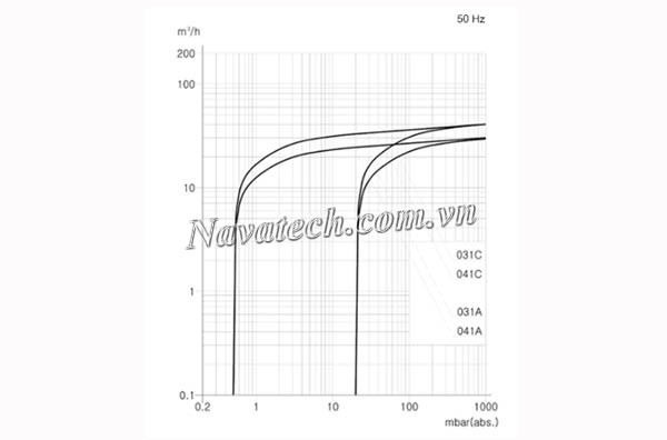 Đường cong hiệu suất bơm vòng dầu 1 cấp Doovac MVO-031